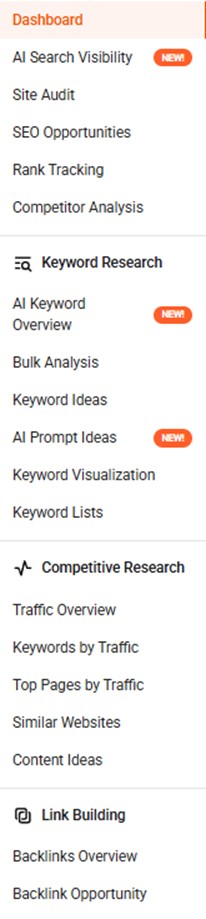 Semrush, on the other hand, is a full SEO suite. Instead of only generating ideas, it’s designed to help you validate, prioritize, and compete using data and competitive context.