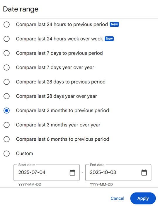 To identify performance drops via GSC, just click Compare under Performance > Search Results.