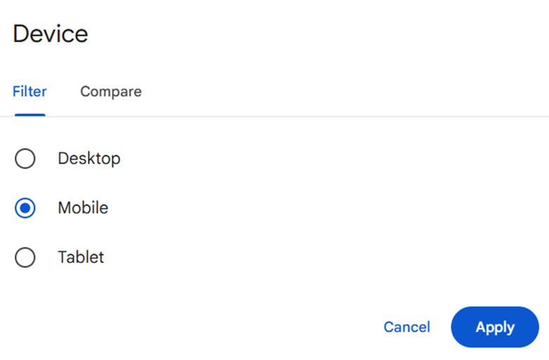 If you want to monitor and find opportunities to boost your mobile SEO performance, Google Search Console can also help you access actual data featuring mobile-only traffic and engagement. Under Performance > Search Results, just click Add Filter, then choose Device. Set the setting to Mobile and you can find all queries mobile users are typing in to find your pages.