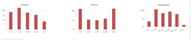 You can see three bar graphs indicating your website’s performance in terms of Position, CTR, and Impressions.