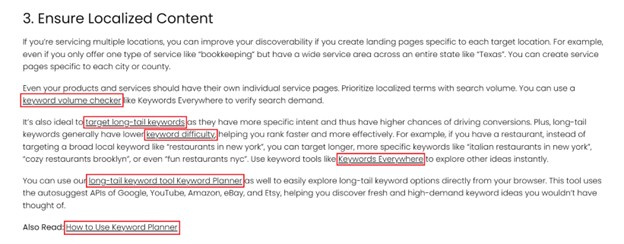 The section above has a few internal links pointing to other relevant pages related to the corresponding anchor texts. This allows users to do further reading if they want, giving supplemental information that can not only add value to users but also very much support SEO as well.