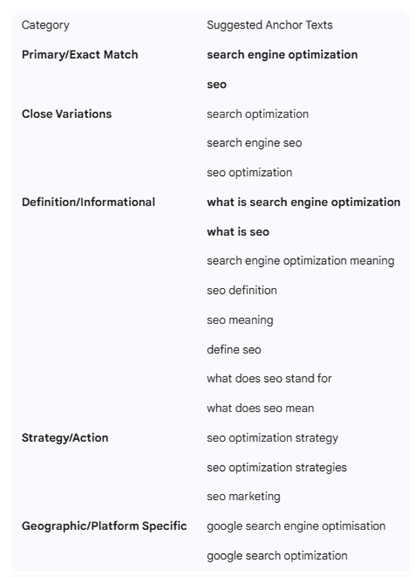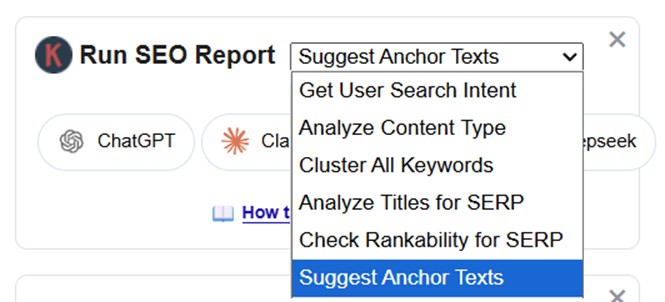 This feature automatically fires the exact prompt that gives you a list of good anchor texts that 100% match the target search intent.