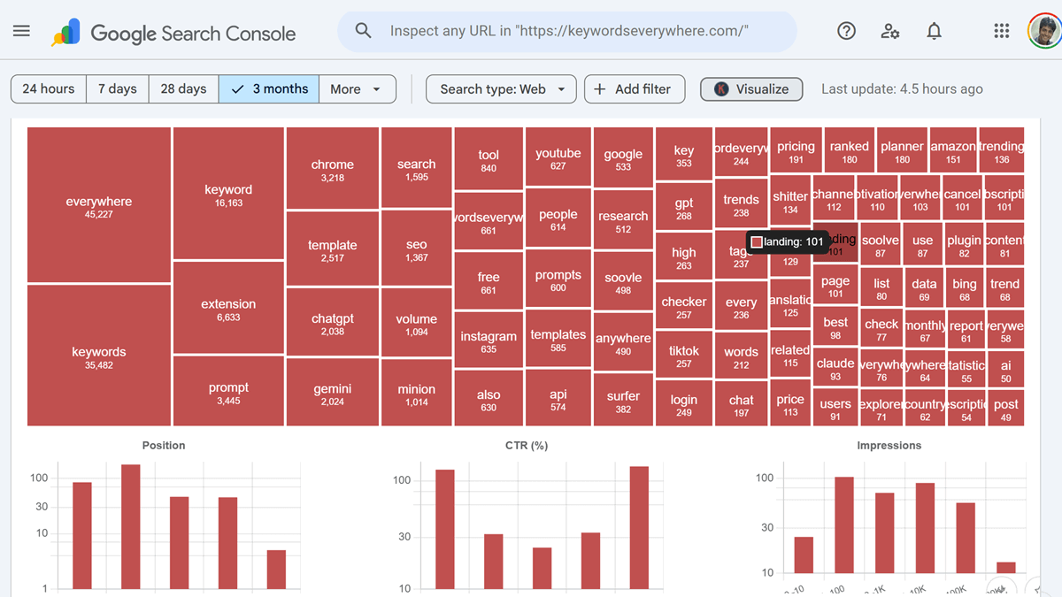 - Ranking and CTR distributions across your site